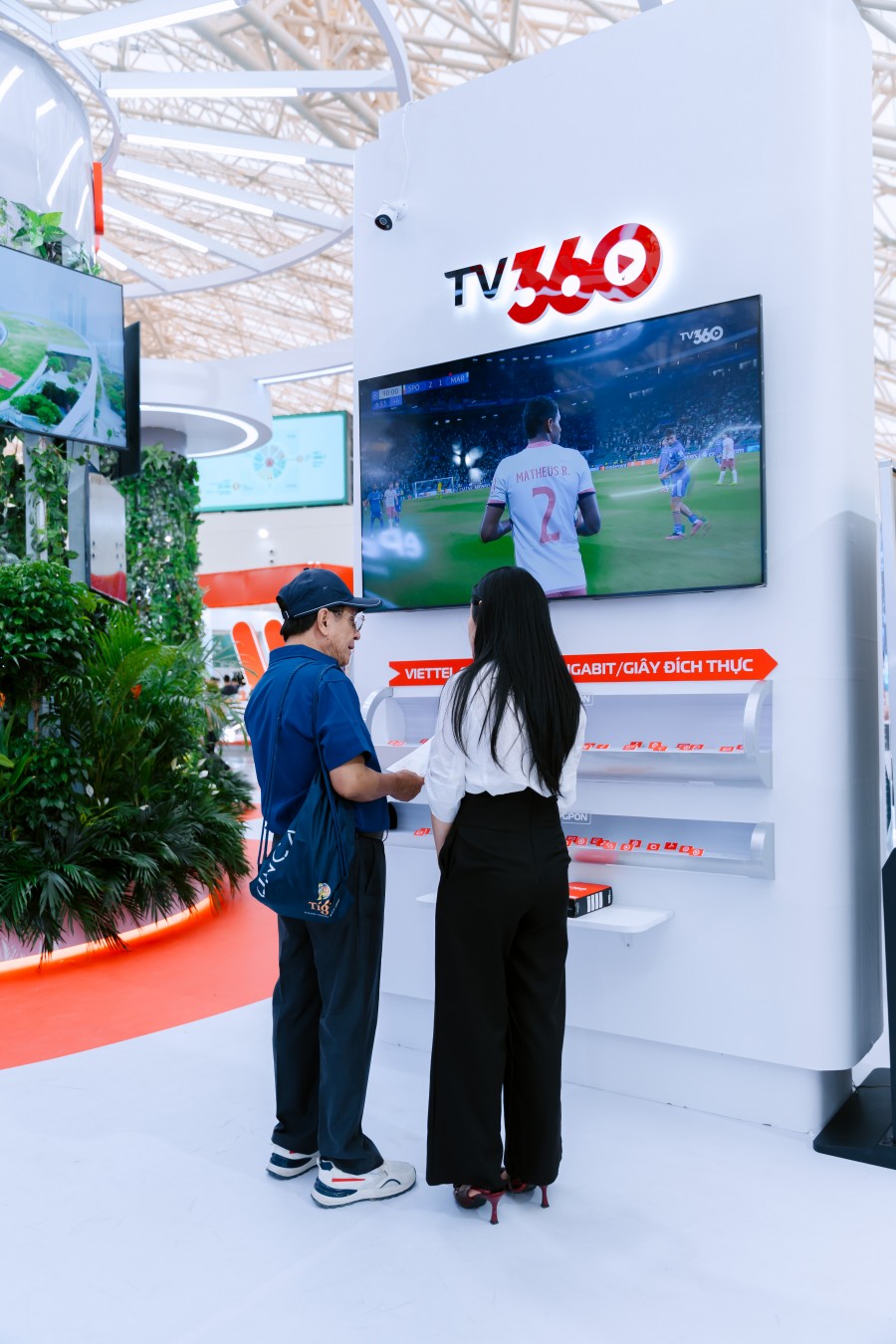 Nằm nổi bật ngay lối vào Sảnh 2, Viettel mang đến không gian trưng bày vừa mang tính cảm xúc, vừa đậm dấu ấn công nghệ, với ý tưởng xuyên suốt: mọi sáng tạo công nghệ của Viettel đều bắt nguồn từ cuộc sống, hướng đến phục vụ con người và kiến tạo tương lai bền vững.