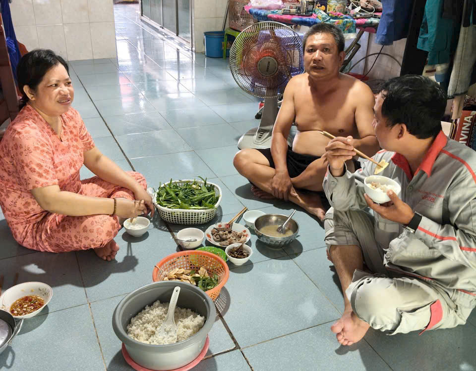 Và dù có ở nhà, bữa cơm gia đình vẫn luôn vắng bóng người cha. Khi cả nhà quây quần, cha thường đang lúi húi cùng mớ dây điện, cái kìm, cái kẹp. Những hôm triển khai gấp ở xa, “bữa cơm đúng giờ” gần như là điều xa xỉ. Các anh ăn vội cùng đồng đội, khi gói mì, khi ổ bánh mì lót dạ, ăn nhanh để quay lại công việc ngay lập tức.